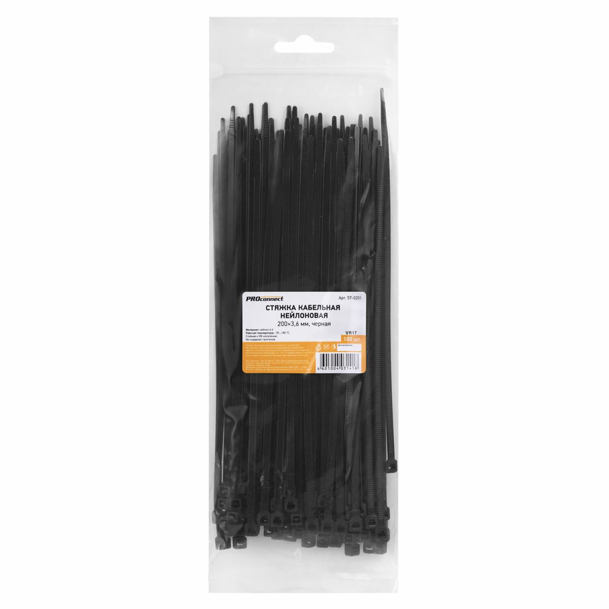 Хомут кабельный 3.6х200 нейл. черн. (уп.100шт) PROCONNECT 57-0201
