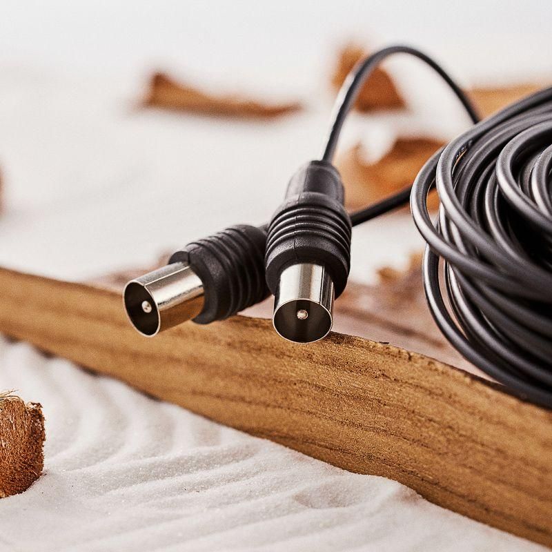 TV удлинитель 15М TV штекер TV гнездо REXANT предназначен для передачи аналоговых аудио и видеосигнала к телевизору, спутниковым ресиверам и т.д. Его используют в качестве удлинителя для TV-кабеля и незаменим при подключении нескольких телевизоров. C одной стороны шнура располагается штекер TV-разъема, с другой - гнездо TV-разъема. Корпус разъемов выполнен из качественного, легкого и прочного пластика. Контакты никелированы и обеспечивают высокий уровень передачи сигнала к оборудованию. Цвет шнура – черный, а длина составляет 15 метров.